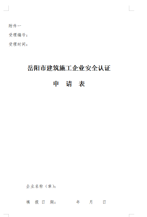 1、提交申报资料时,需提供《岳阳市建筑施工企业安全认证申请表》和《企业在建工程项目汇总表》电子版本,要求表中内容填写准确,单位及工程名称栏必须填写全称。