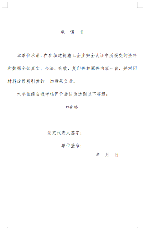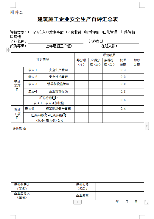 3、企业自我考核评价报告,含建筑施工企业安全生产自评汇总表(附件二)。