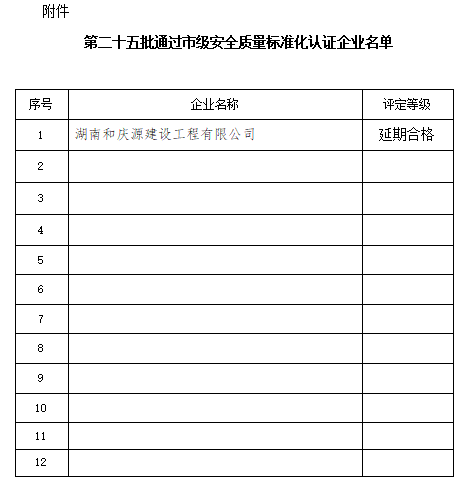 根据省建筑业协会湘建建【2016】11号文件的规定,在市城乡建设协会的指导、监督下,市安全质量标准化认证中心严格按照程序开展了我市第二十五批建筑施工企业市级安全质量标准化认证工作。经过组织专家进行资料初审、现场核查、项目检查、社会评价,现将通过的一家企业予以公示。公示期为2017年12月28日至2018年1月4日。
