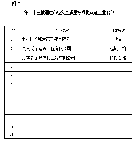 附件:第二十三批通过市级安全质量标准化认证企业名单
